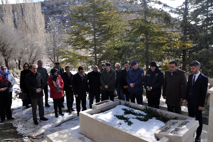 Ermenek Belediye Başkanı Mustafa Bozcu, İlçe Emniyet Müdürü Erdem Aynur, Jandarma Astsubay Kıdemli Başçavuş Mehmet Çöl, CHP İlçe Başkanı Ayni Çetin, İlçe Kaymakamlığı Yazı İşleri Müdürü Resul Yağcı, İlçe Nüfus Müdürü Yusuf Semerci, İlçe Müftüsü Hüseyin Ankaralı ve vatandaşların katılımıyla gerçekleşen törende, merhum Bakan dualarla anıldı, mezarına karanfiller bırakıldı.