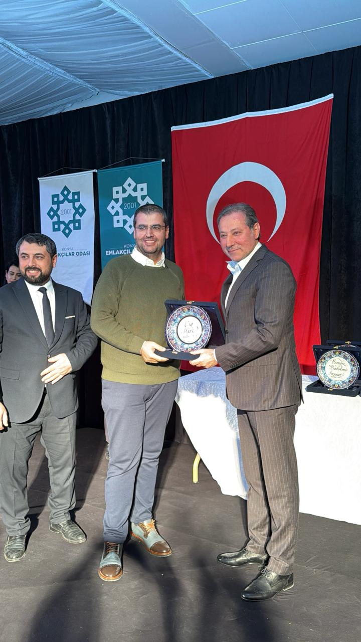 Konya Esnaf ve Sanatkârlar Odaları Birliği Başkanı Muharrem Karabacak, Çığ Yapı ve Grup Onursal Başkanı Dr.Rüştü Yıldırım’a plaket takdim etti.